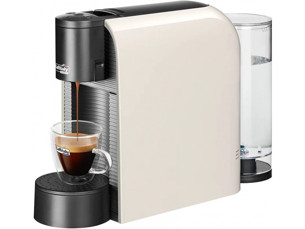 Aparat za kavu na kapsule u bijelom dizajnu.