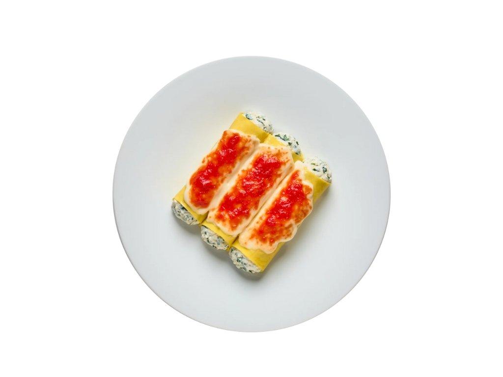 Klasik talijanske tradicije! Mekana, svježa tjestenina cannelloni obavija kremasti nadjev od ricotte i špinata, stvarajući delikatno i ukusno jelo.