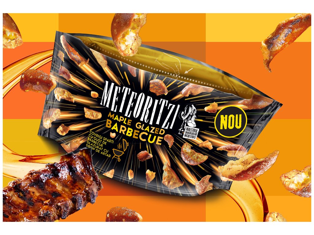 Pripremite se za pravu količinu okusa! Glazirani Barbeque Meteorites su ukusni hrskavi zalogaji s glaziranom BBQ površinom koji će vas odvesti ravno na američki roštilj. Slatko-slana kombinacija s blago dimljenim tonom savršena je za filmske večeri, zabave ili samo uz pivo.