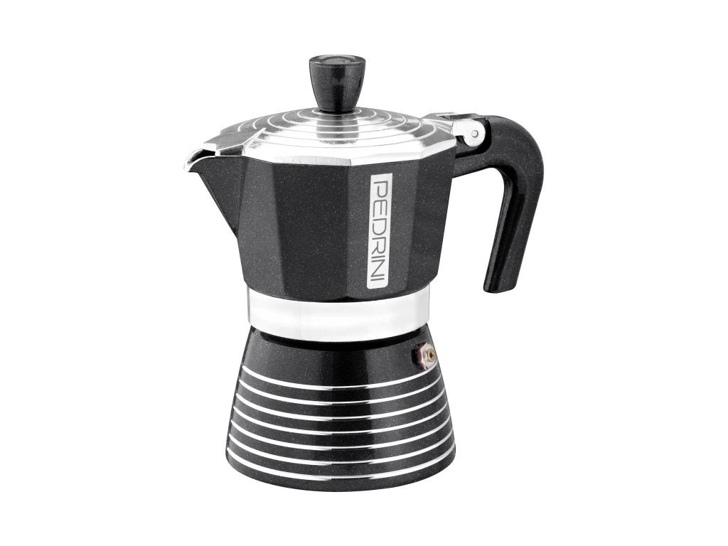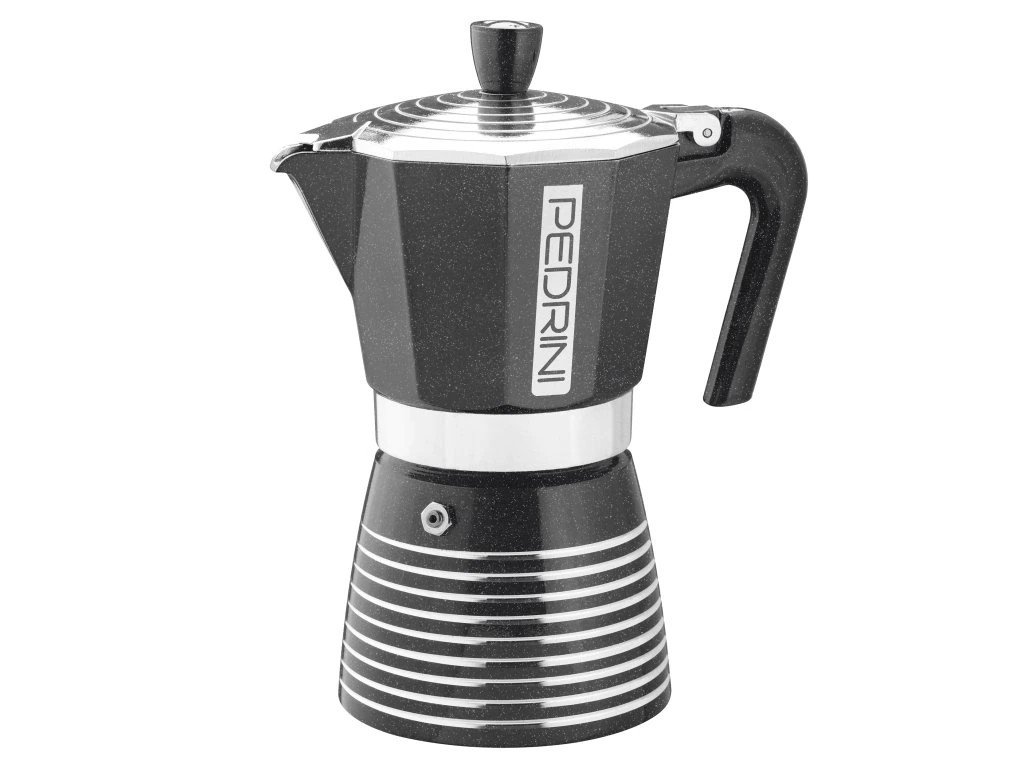 Infinity talijanskog brenda Pedrini je elegantna moka posuda izrađena od vrhunskog aluminija prehrambene kvalitete . Površina joj je ukrašena svjetlucavom glazurom otpornom na toplinu koja štiti materijal od tamnjenja i gubitka kvalitete čak i uz dugotrajnu upotrebu. Elegantni kružni uzorci na poklopcu i dnu daju posudi dodir koji će oduševiti ne samo vas, već i svakog vašeg posjetitelja.