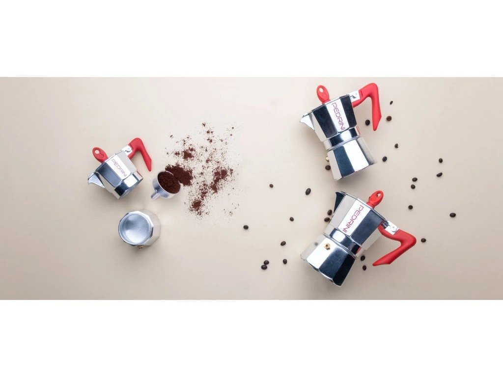 Pedrini Kaffettiera je bezvremenska aluminijska moka posuda proizvedena isključivo u Italiji . Njezin deseterokutni oblik osigurava savršenu raspodjelu topline tijekom zagrijavanja, što doprinosi ravnomjernoj ekstrakciji kave. Posuda je izrađena od aluminija prehrambene kvalitete EN601 , koji je ne samo izdržljiv , već omogućuje i stvaranje fine patine. Ona se formira na unutarnjoj površini redovitom upotrebom i s vremenom obogaćuje okus svake šalice. Ergonomska ručka otporna na toplinu s otpornošću na toplinu do 210 °C dizajnirana je za udobno rukovanje i, zajedno s praktičnim silikonskim brtvom, jamči savršeno brtvljenje tijekom svakog kuhanja. Sigurnost je osigurana 100% kontroliranim sigurnosnim ventilom , koji eliminira rizik od prekomjernog tlaka.