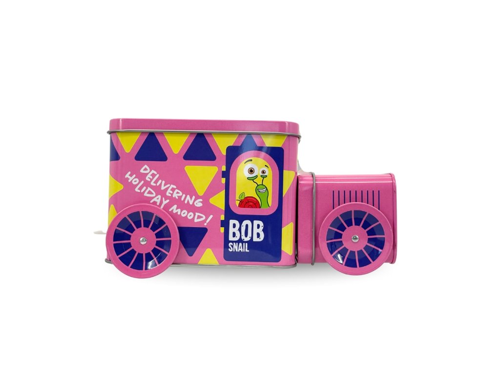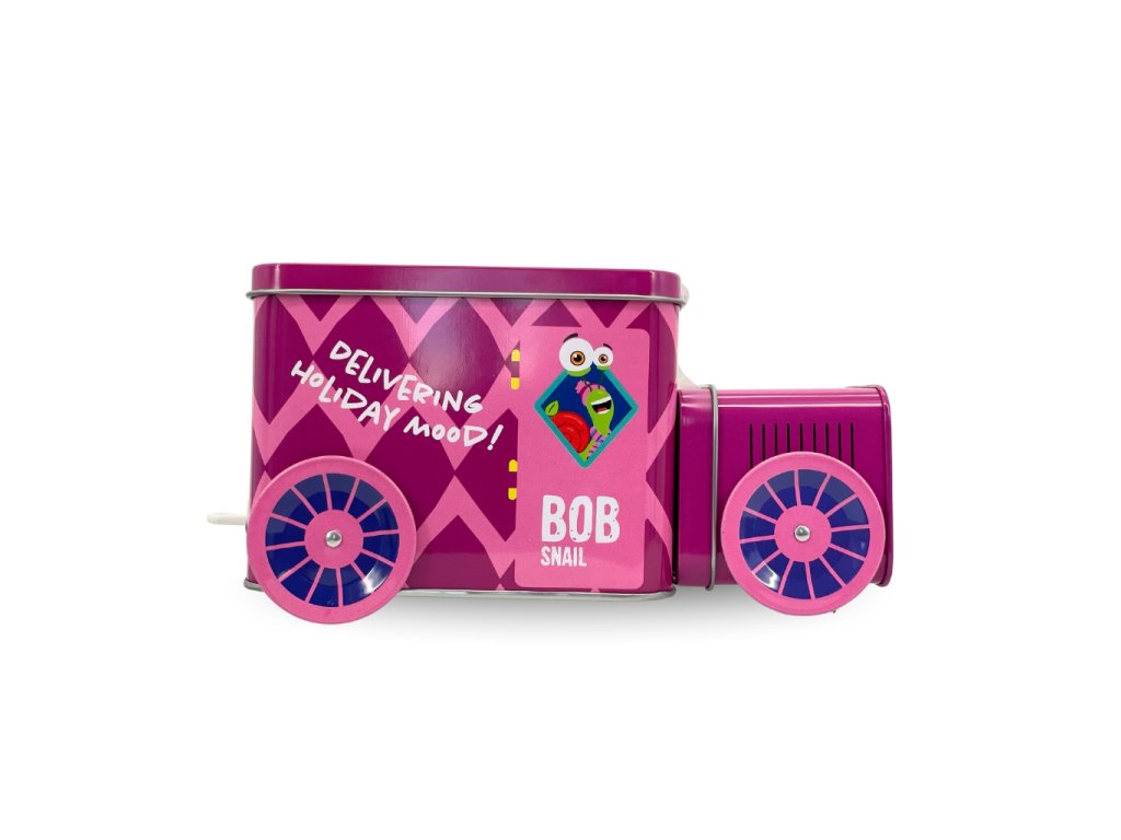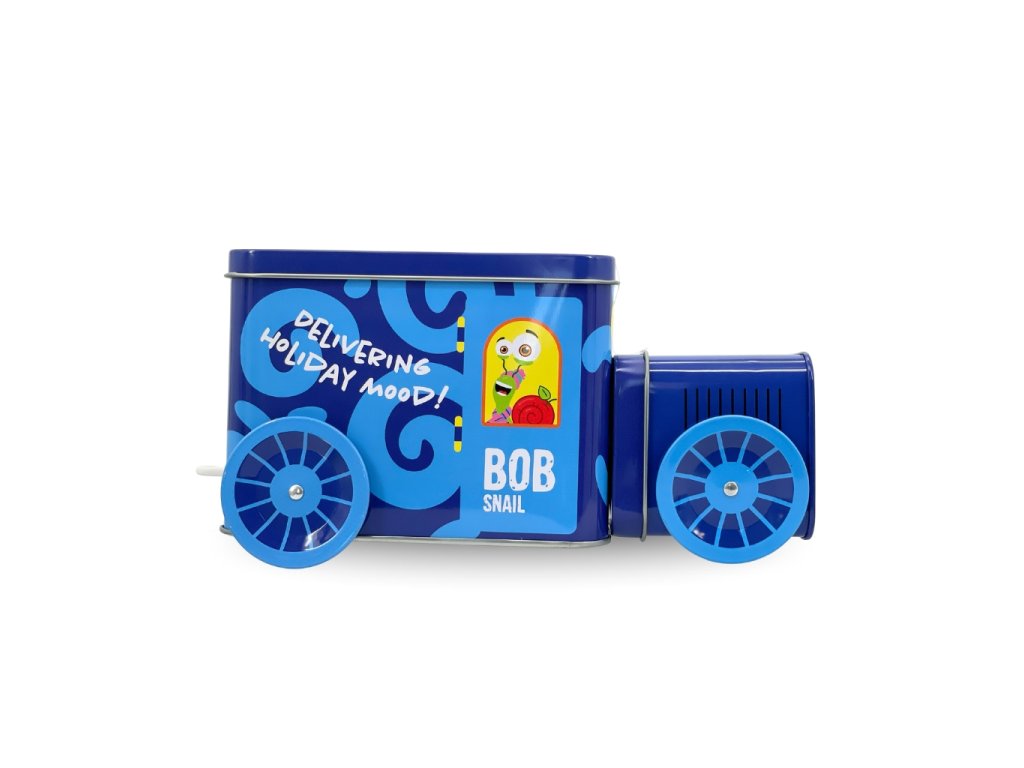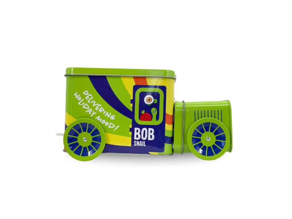 Božićna lokomotiva Puž BOB u 9 varijanti boja ispunjena je omiljenim voćnim poslasticama, igračkom iz ograničenog kolekcionarskog izdanja, setom naljepnica i originalnom kartom za nezaboravno putovanje.