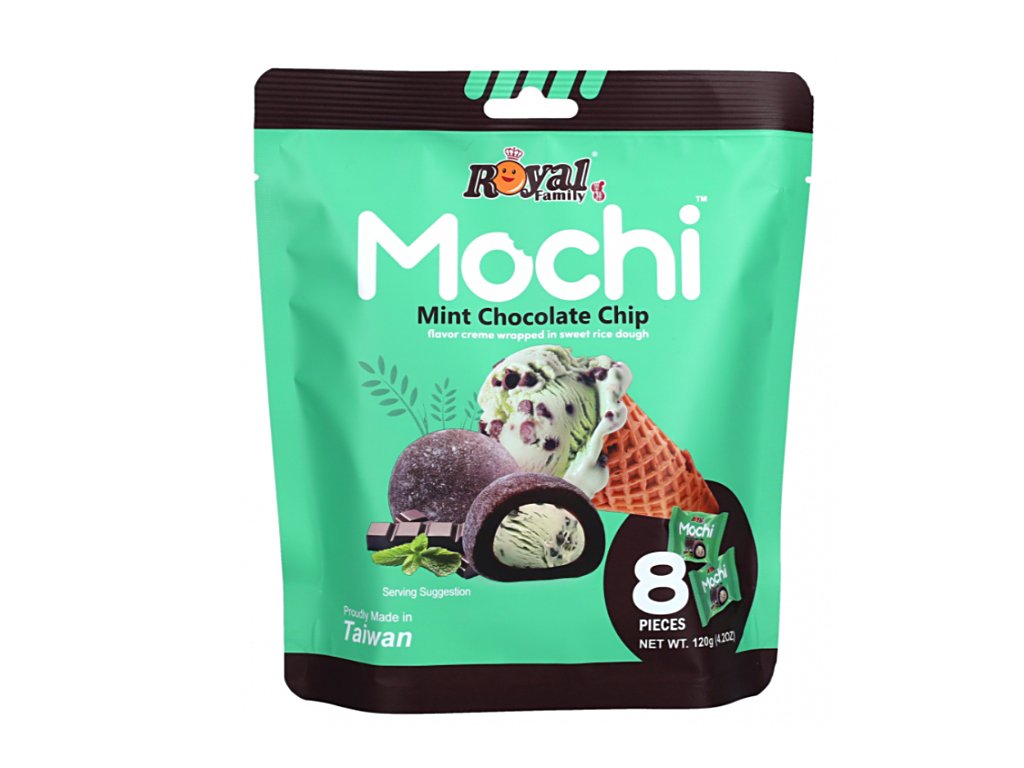 Doživite savršenu harmoniju osvježavajuće mente i bogate čokolade u ovom jedinstvenom desertu tajvanskog brenda Royal Family. Mekano, žvakasto rižino tijesto skriva ukusnu kremu s osvježavajućim okusom mente i male komadiće čokolade koji ugodno hrskaju. Ovaj desert, inspiriran omiljenim sladoledom na svijetu, odličan je izbor za ljubitelje klasičnih okusa. Pakiranje sadrži 8 pojedinačno zamotanih komada.