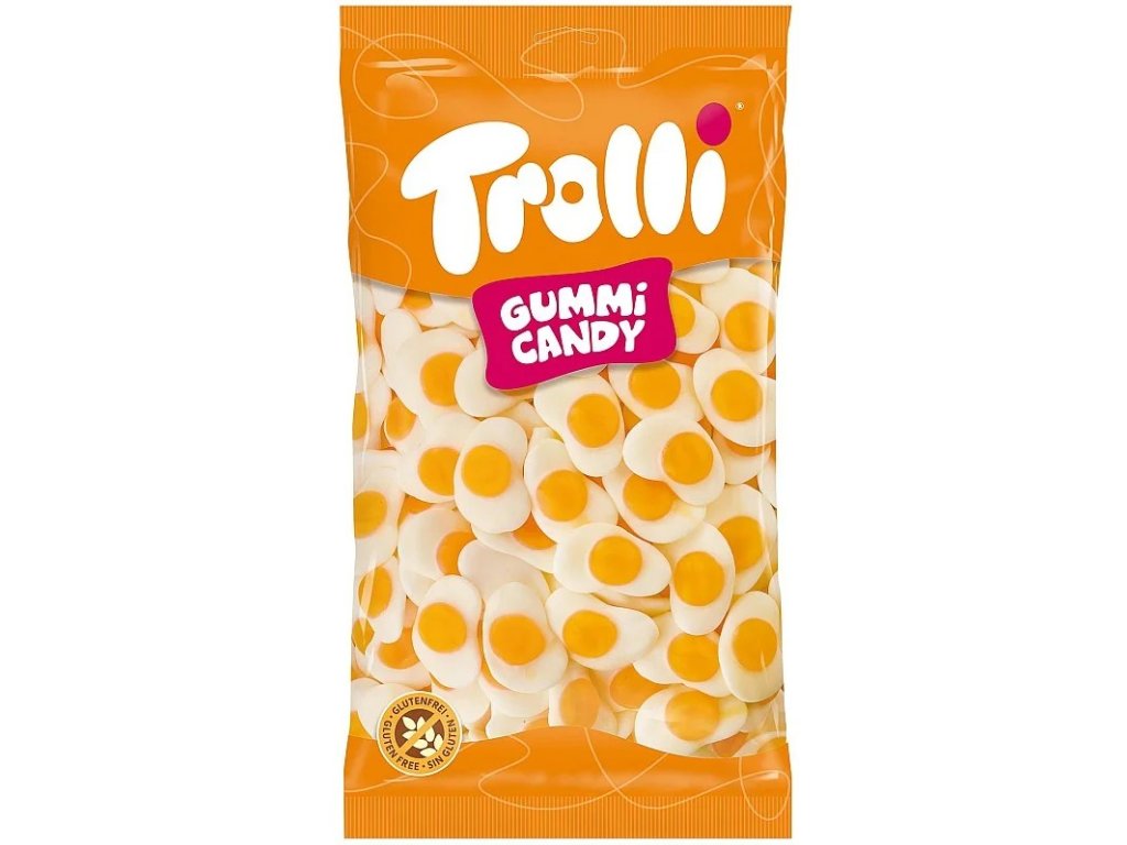 Ovi gumeni bomboni u obliku mete apsolutni su klasik koji ne bi smio nedostajati u nijednom dobrom izboru slatkiša. Trolli gumena jaja kombiniraju meku, pjenastu teksturu "bjelanca" s voćnom, želeovitom sredinom koja predstavlja "žumanjak".