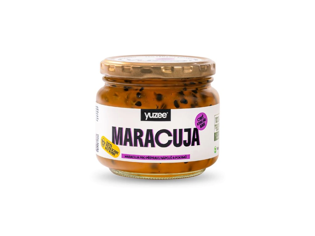 YUZEE Marakuja, također poznata kao voće marakuje. Uživajte u egzotičnoj slatko-kiseloj pulpi s hrskavim sjemenkama, koja je savršena za domaće limunade, ljetne koktele, deserte ili kašu za doručak.
